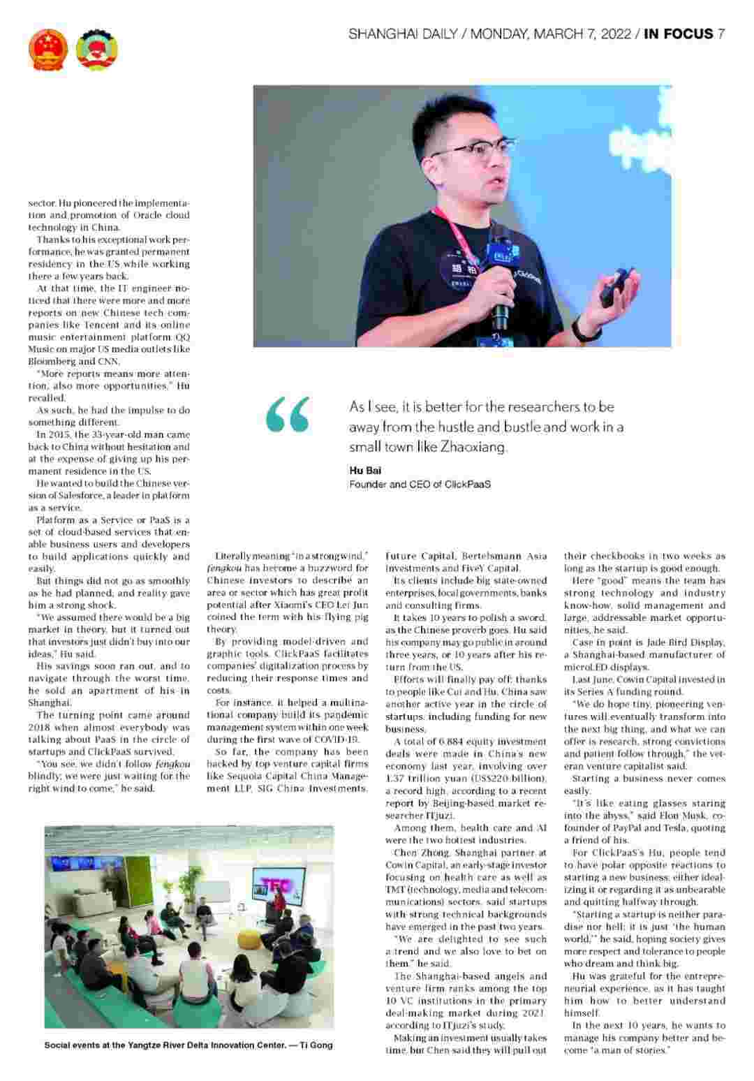 在正在进行的两会上,,,,,,,,,,,高质量增长和乡村振兴是国家立法者和政治顾问的热门话题,,,,,,,,,,,,而长三角地区的发展已成为这方面的指南。。。。。。。。。。。在上海市青浦区赵巷小镇,,,,,,,地处长三角中心地带,,,,,,,良好的自然环境和创业环境吸引了众多有志创业者。。。。